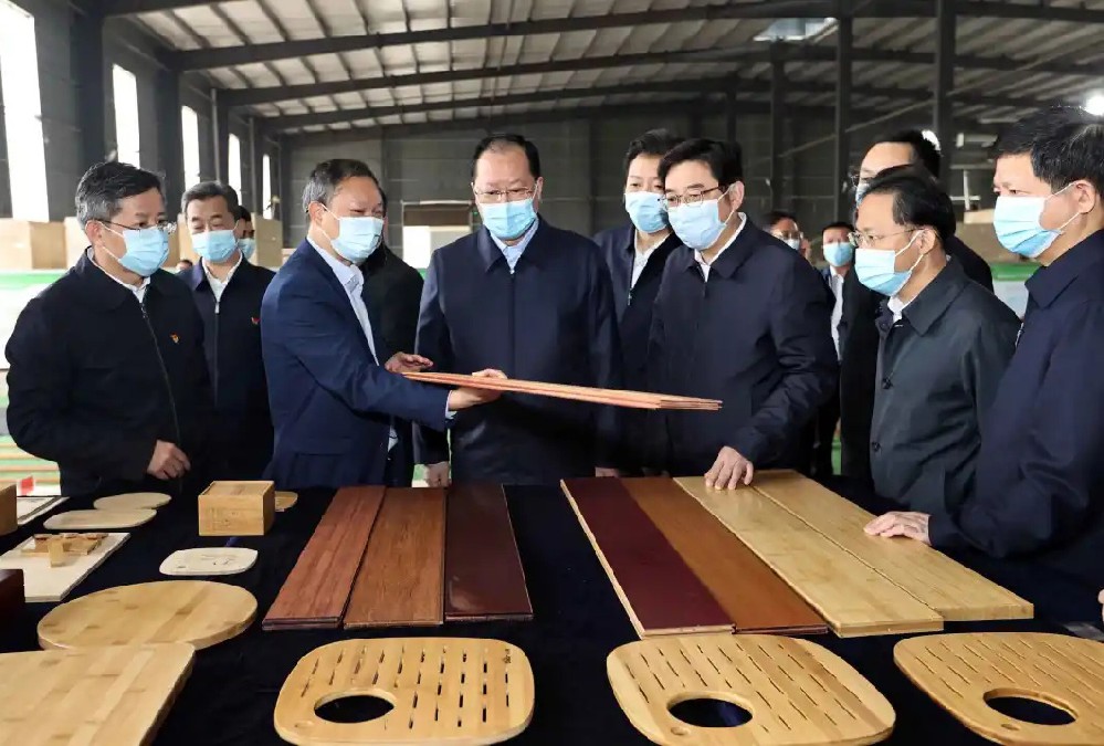 2025年6月16日,省政協副主席虢正貴來湖南桃花江竹材科技股份有限公司調研生態資源轉化與特色產業融合發展。公司董事長、省人大代表薛志成陪同并介紹情況。虢正貴充分肯定了桃花江竹材在竹資源利用及竹特色產業融合發展所取得的成果,他鼓勵企業繼續發揮龍頭優勢,充分利用好桃江資源稟賦和產業優勢,深化產學研融合,提升竹產業附加值,為民族地區生態資源高效轉化和特色產業融合發展探索更多經驗。